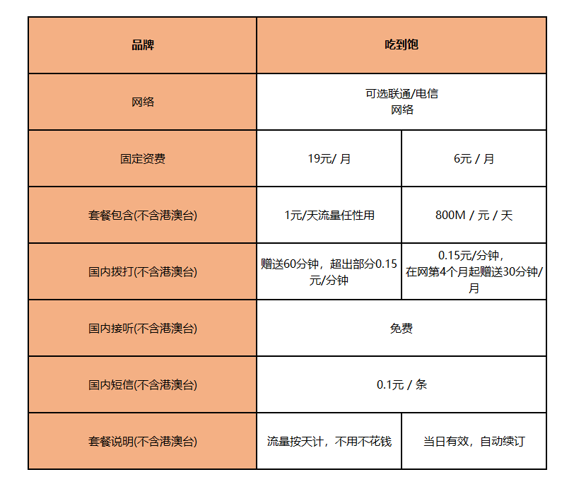 特权加油包: 吃到饱(联通版):19元/月套餐月使用流量达到20GB上网速率限制至1Mbps,累计达到100GB后,上网速率限速至256Kbps,次月恢复4G上网速率;吃到饱(电信版):19元/月套餐月使用流量达到30GB后按1元/500M/天收费。