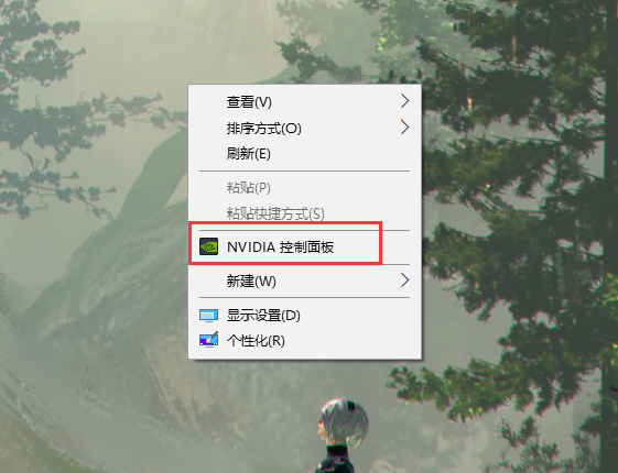 1. 右击桌面空白处--选择“NVIDIA控制面板”。(若无此选项可到官网下载显卡驱动重安装)