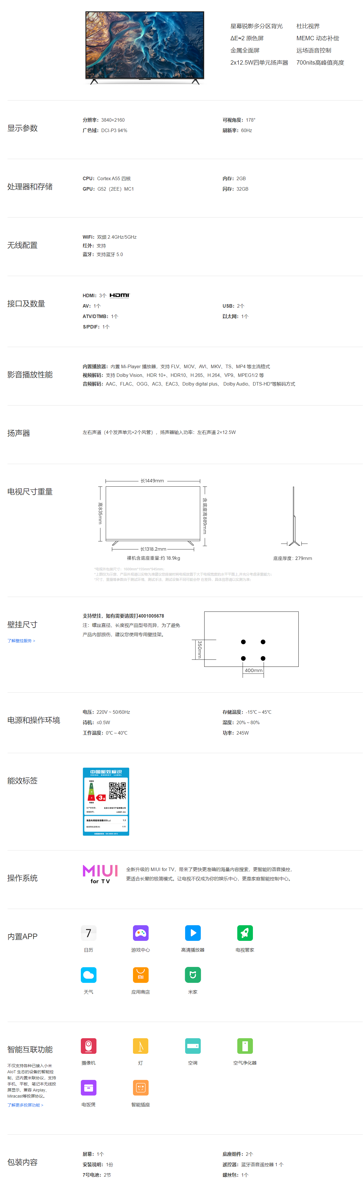 小米电视ES65参数