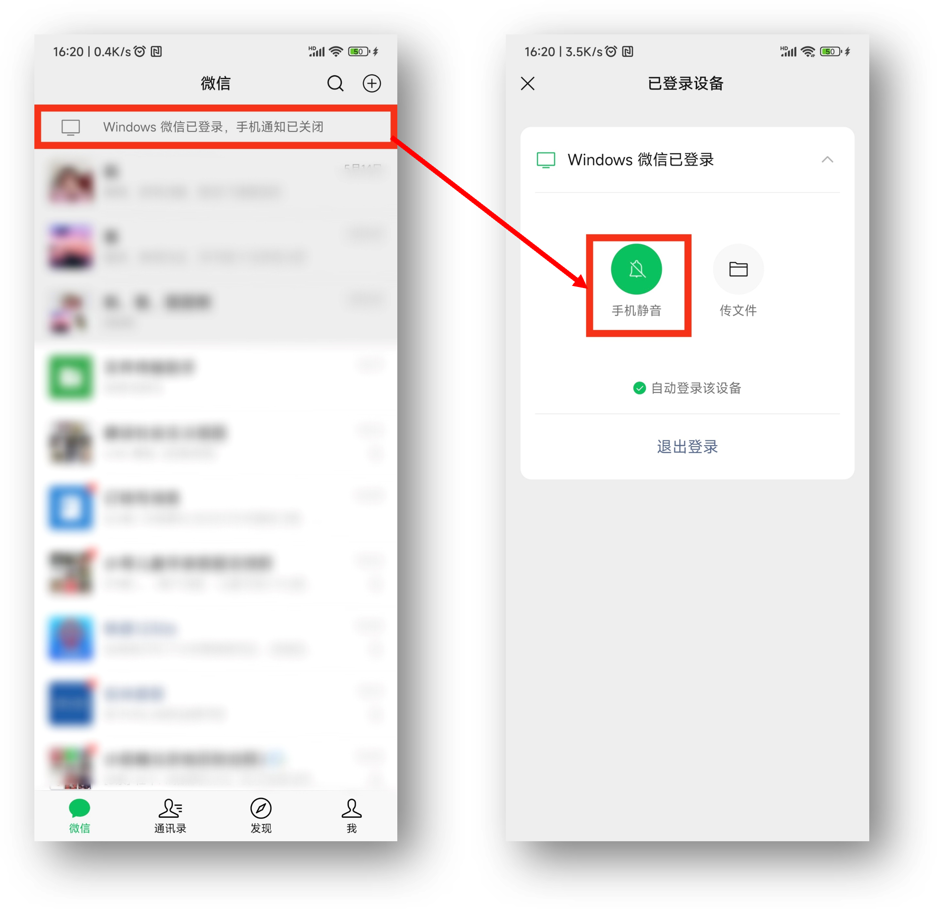 QQ、微信等聊天应用,多端同时登录时,通常移动端会自动开启消息免通知,此时移动端将不会对新消息进行提醒;可以在软件中进行相关设置,以下以微信为例